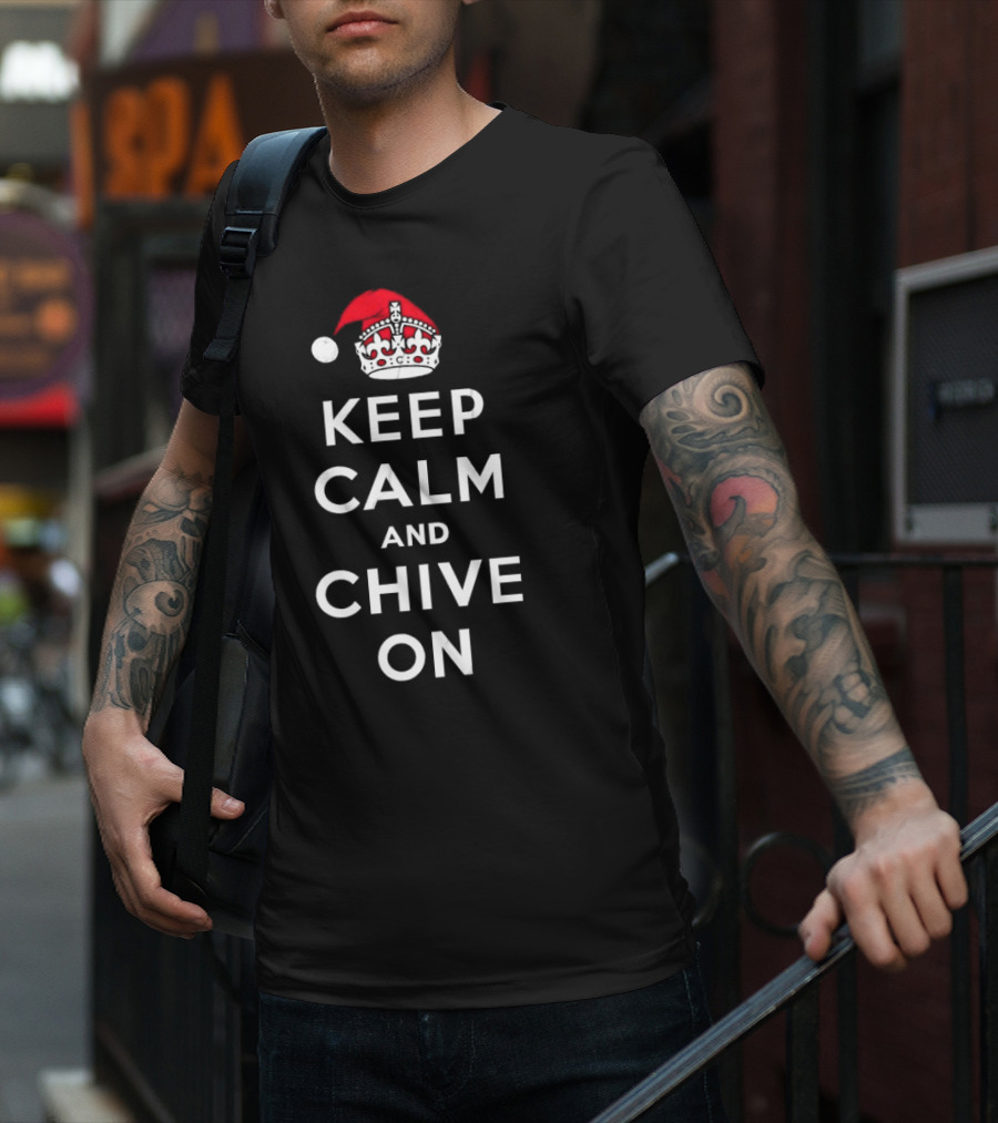 Keep Calm And Chive On Christmas With Santa Hat Crown T-Shirt