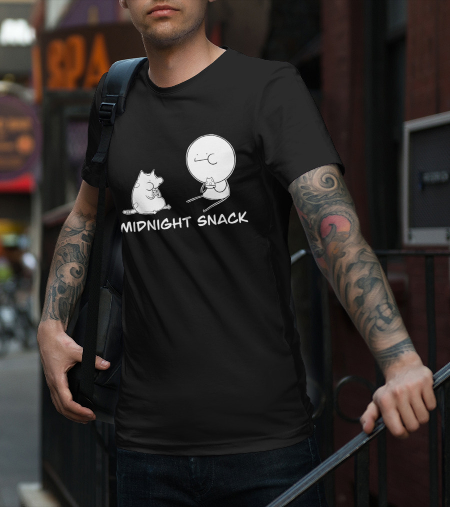 MIDNIGHT SNACK Cat And Stick Figure Eating Pizza T-Shirt