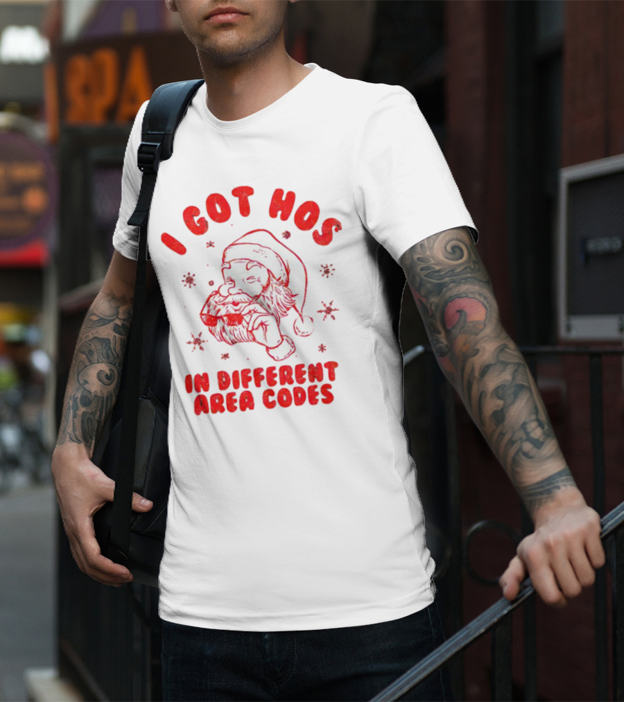 I Got Hos In Different Area Codes Santa Claus Sunglasses Snowflakes T-Shirt