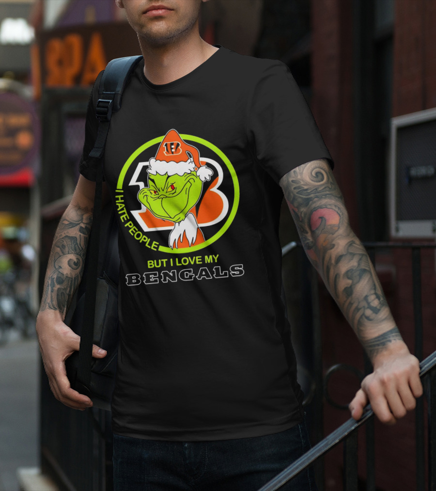 Grinch Santa Hat I Hate People But I Love My Bengals Football Fan T-Shirt