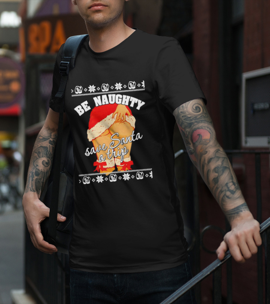 BE NAUGHTY SAVE SANTA A TRIP Santa Outfit Naughty Christmas Humor T-Shirt
