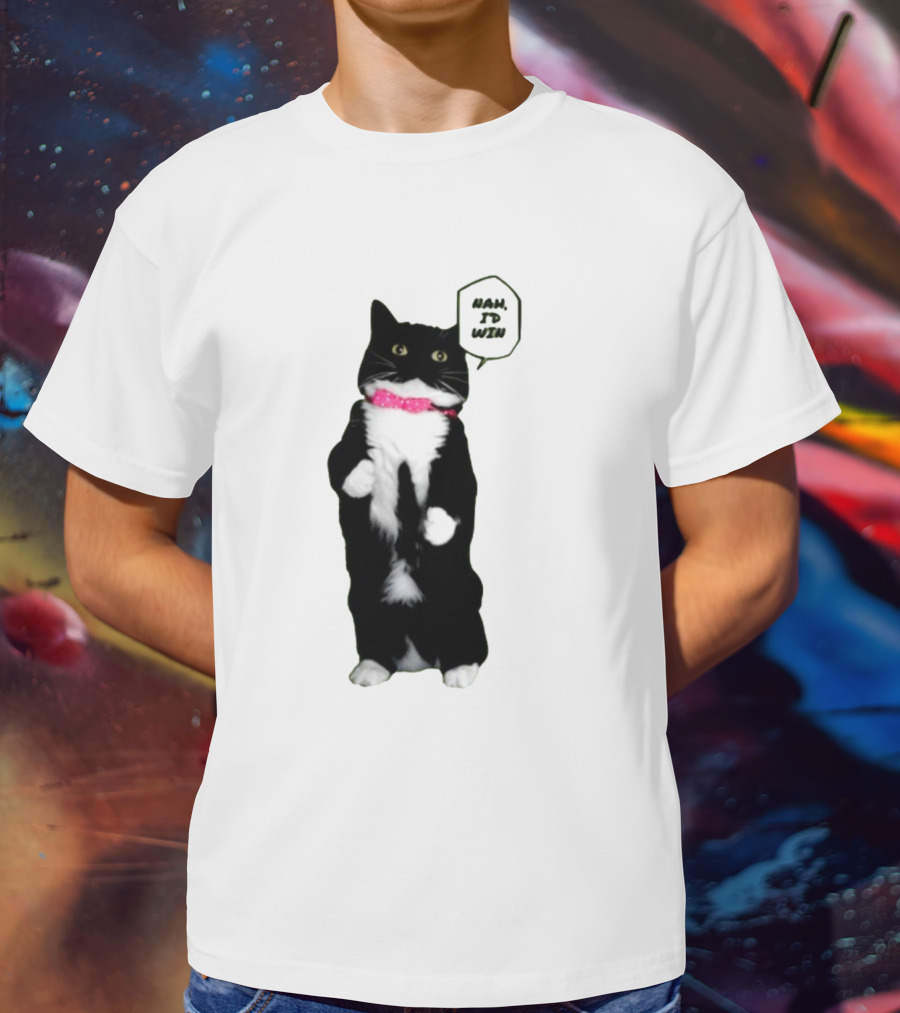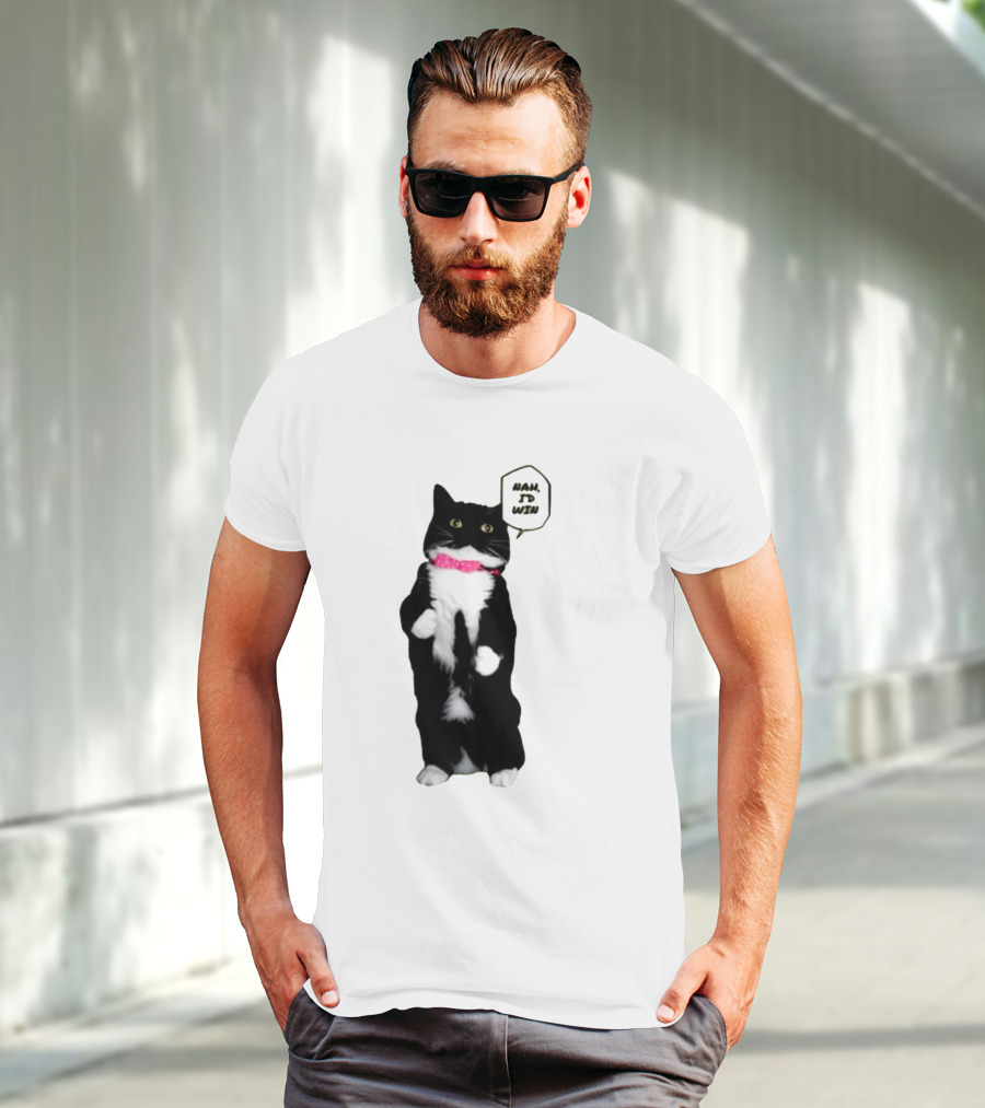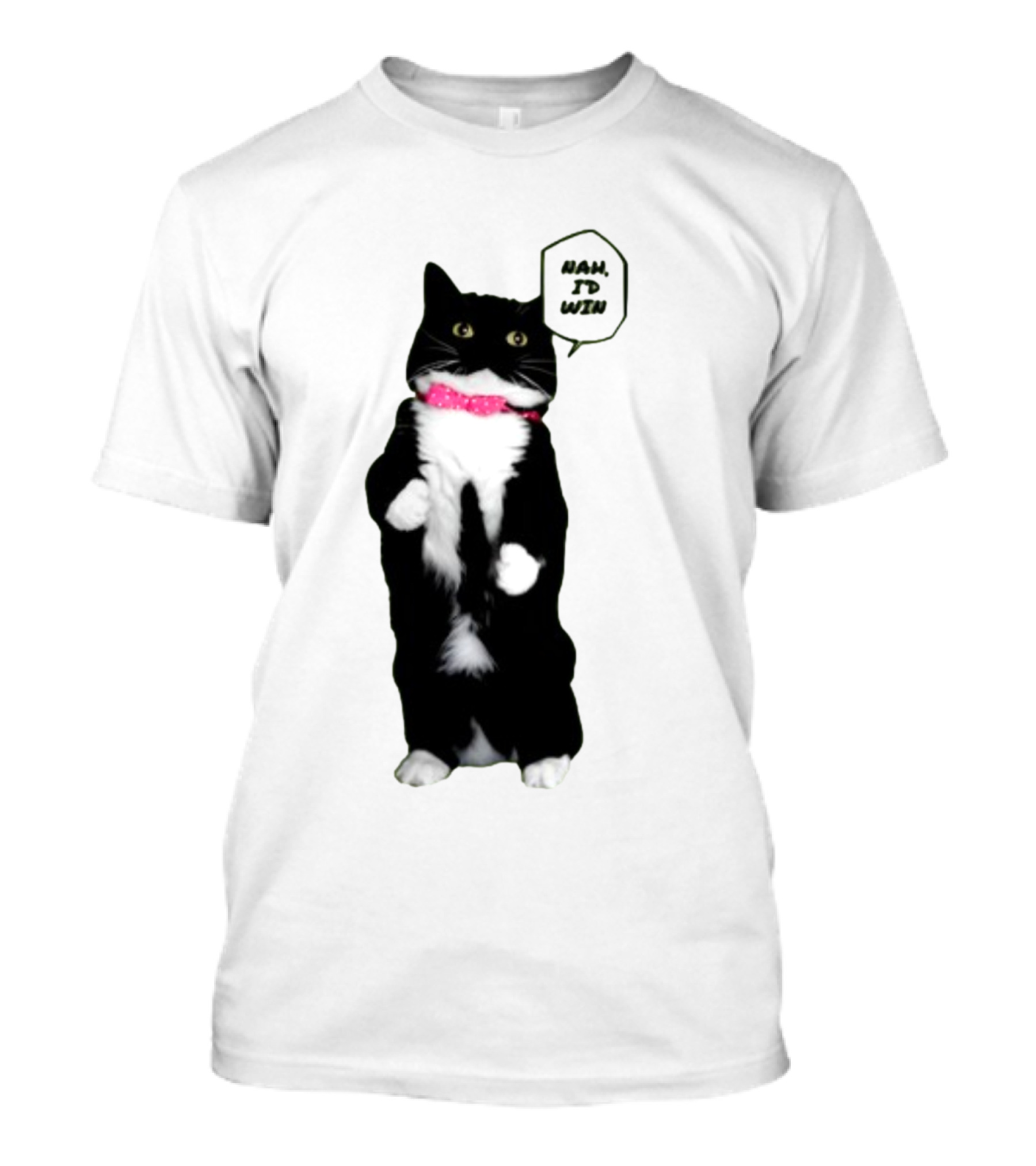 Nah I'd Win Cat Pink Collar Black And White Feline T-Shirt