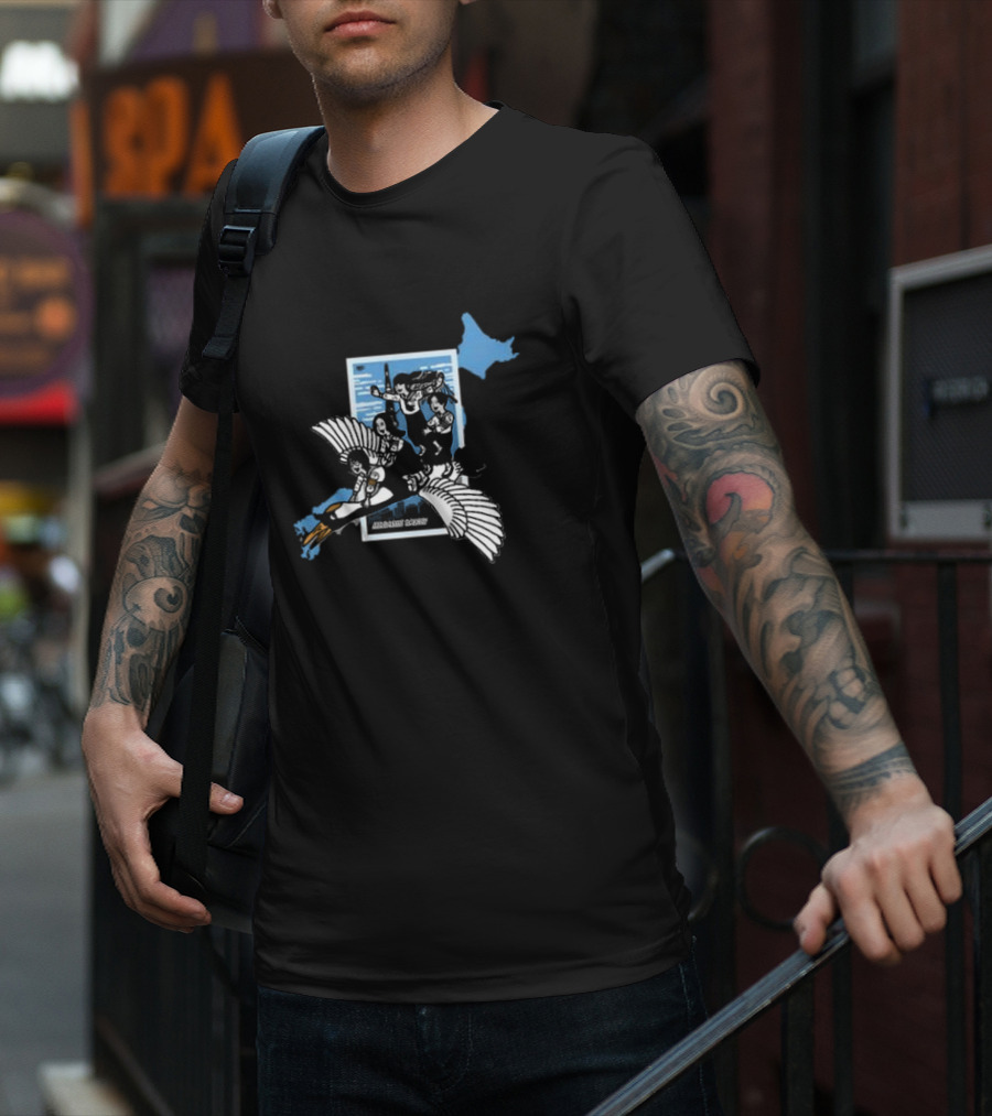 Atarashii Gakko Flying Group On White Cranes Navy Map T-Shirt
