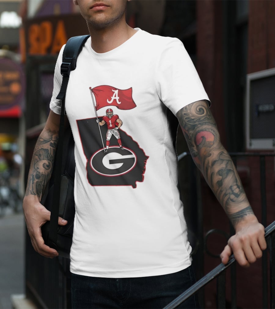 Alabama Crimson Tide Flag Over Georgia Bulldogs Map Football Rivalry T-Shirt